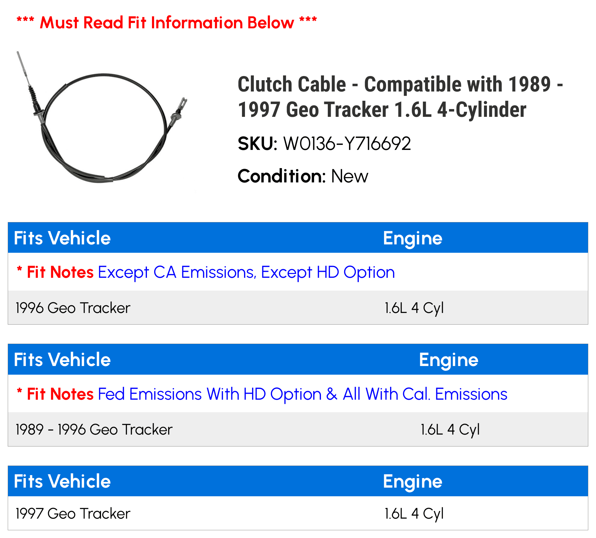Clutch Cable Compatible With 1989 1997 Geo Tracker 1 6l 4 Cylinder 1990 1991 1992 1993 1994 1995 1996 Walmart Com